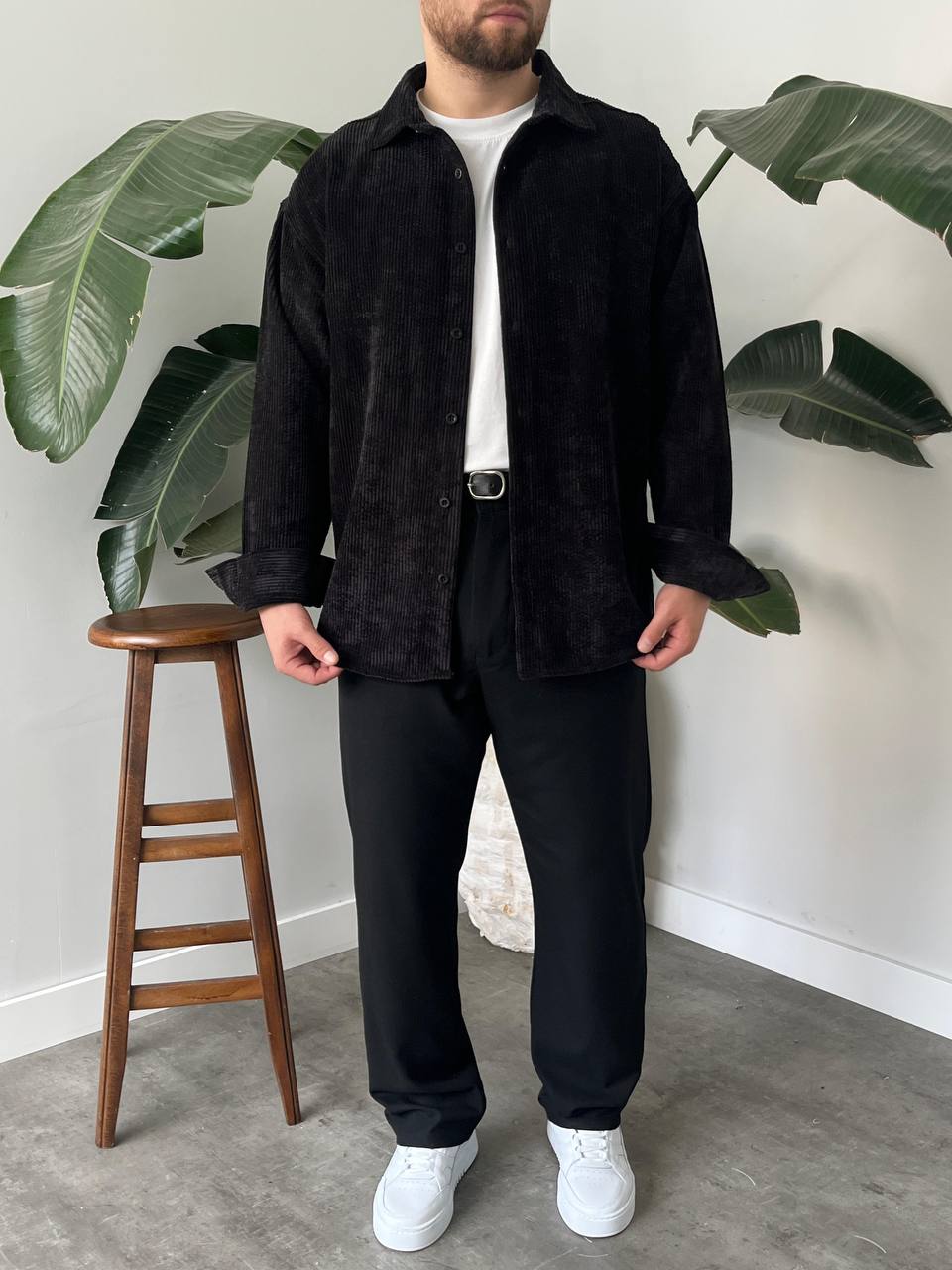 BayAygün 5103 Oversize Kadife Gomlek _Siyah