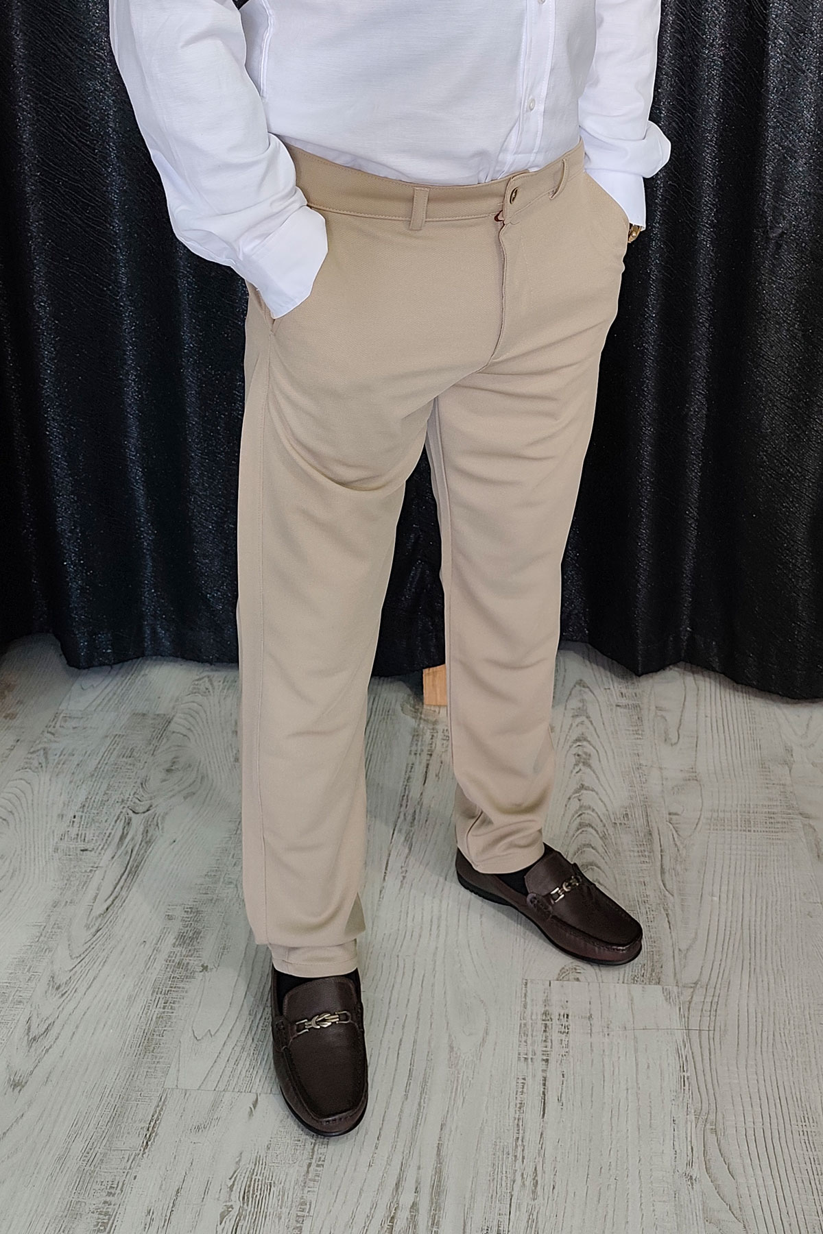 BayAygun 0510 Nokta Desenli Dar Kesim Pantolon _Bej