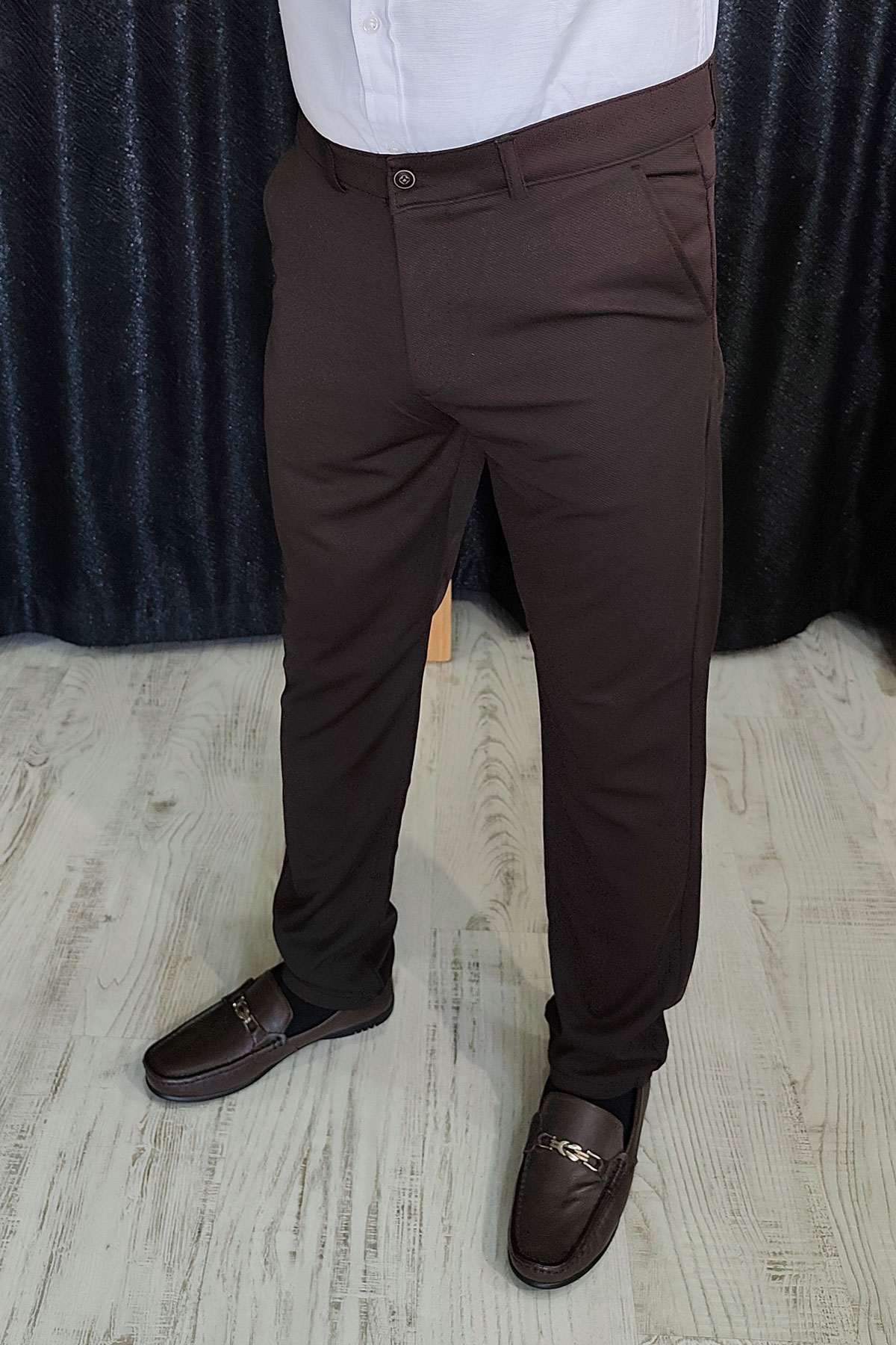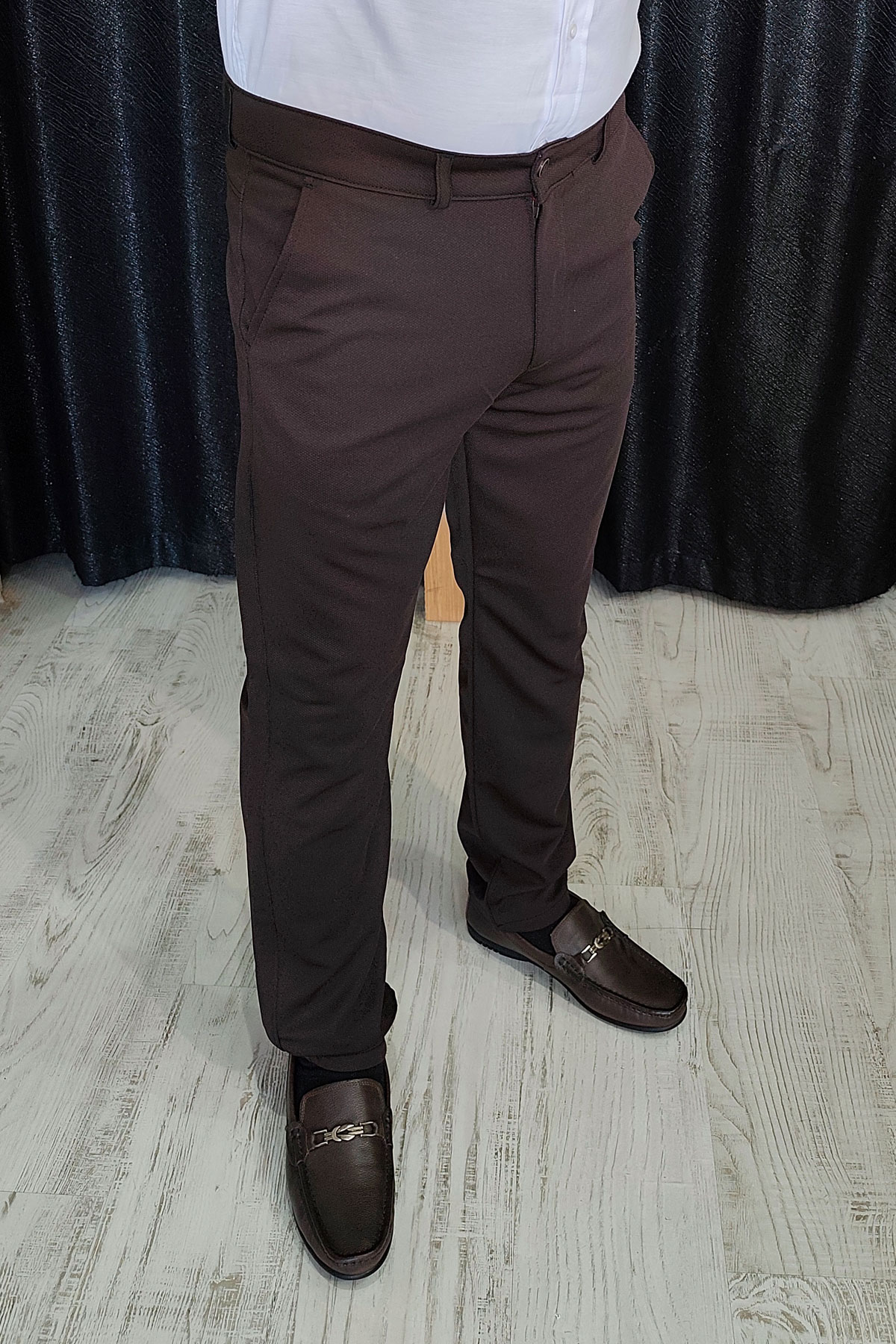 BayAygun 0510 Nokta Desenli Dar Kesim Pantolon _Koyu Kahve