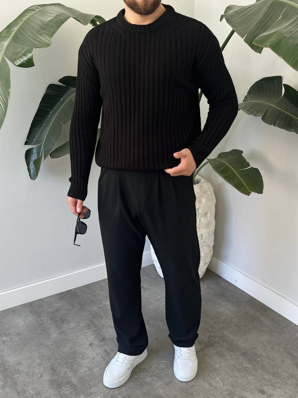 BayAygun 5102 Oversize Bisiklet Yaka Triko Kazak Kazak_Siyah