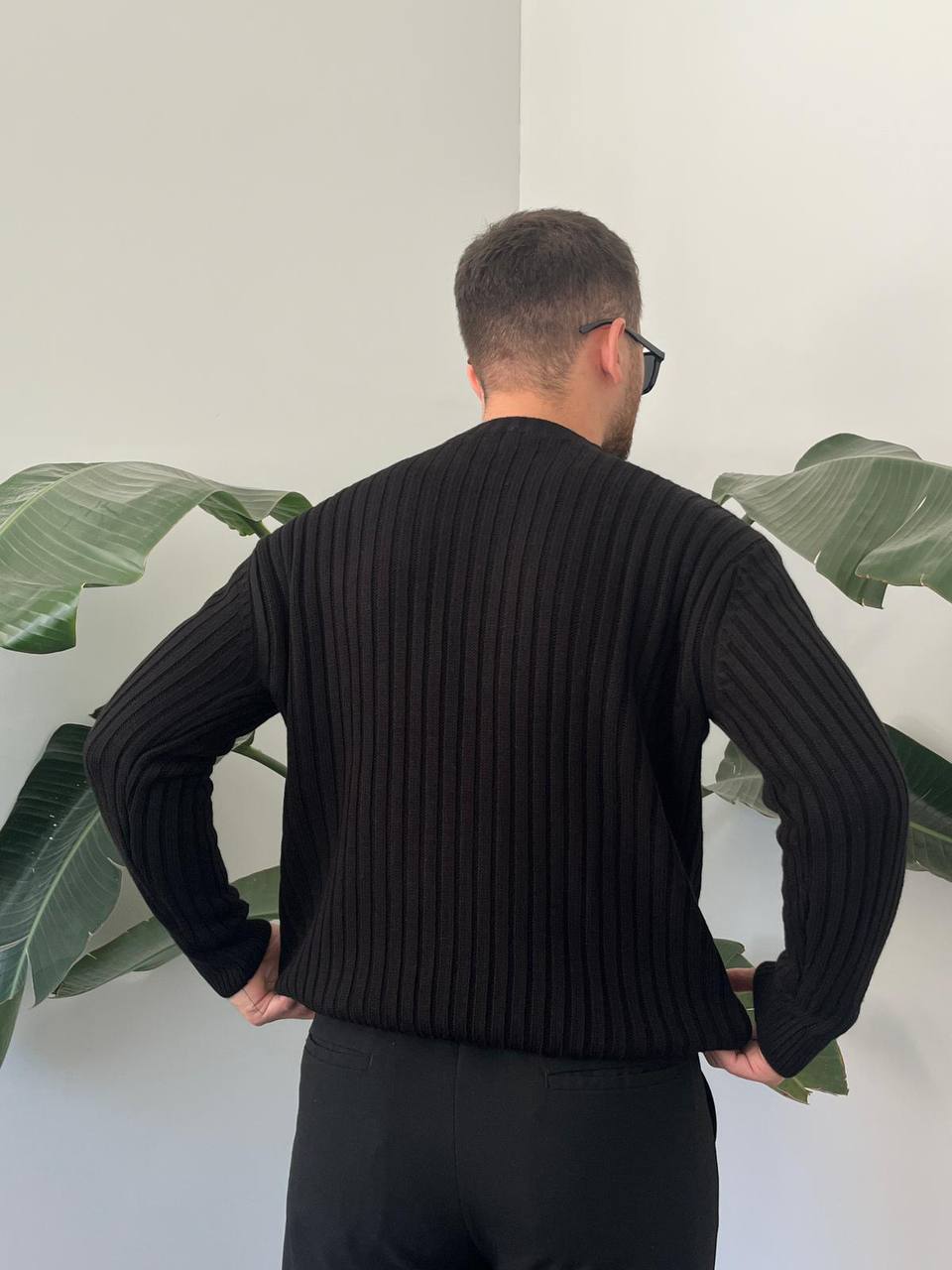 - Rahat ve şık bir görünüm için oversize kesim tasarımıyla dikkat çeken erkek triko kazak.