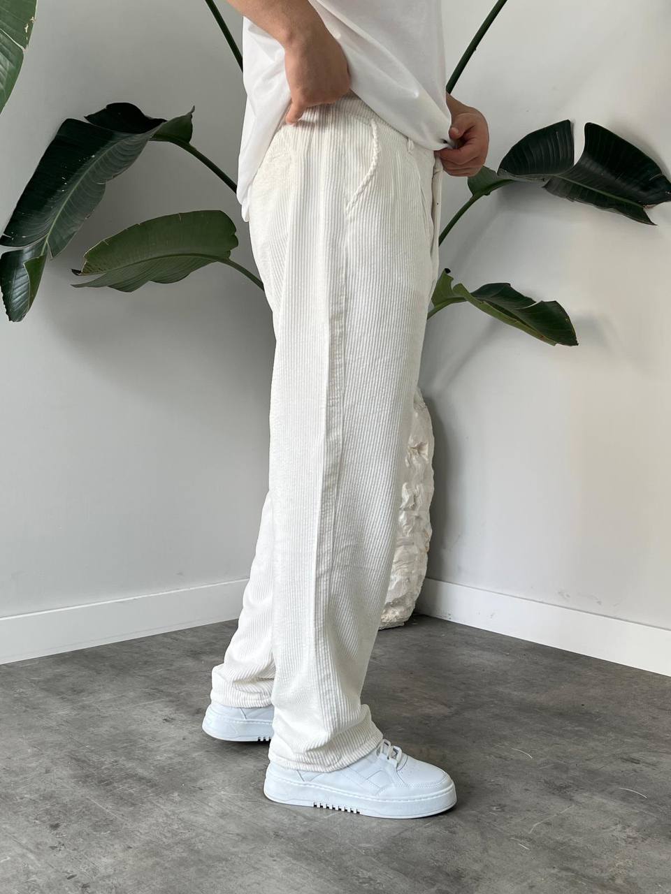 BayAygun 5113 Baggy Fitilli Kadife Pantolon_Beyaz