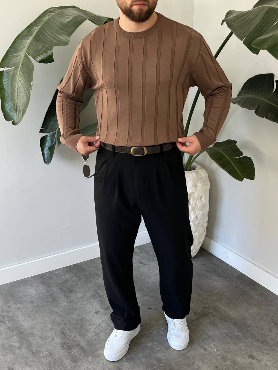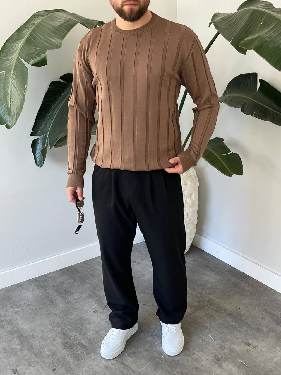 - Uzun kollu tasarımı ile kış aylarında sıcak tutarken, çizgili deseniyle modern bir stil yaratır.