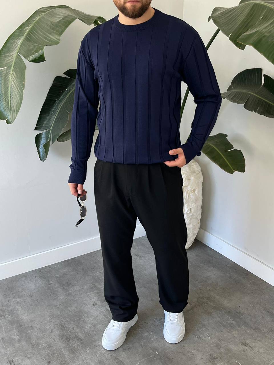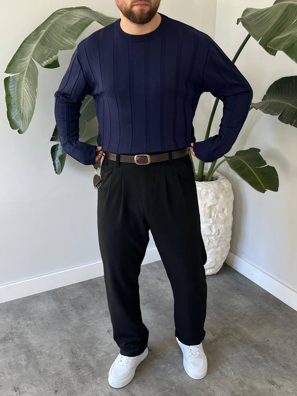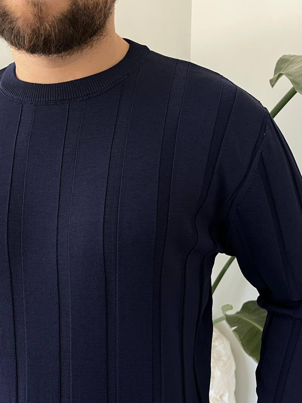 BayAygun 6350 Fitilli Bisiklet Yaka Kazak_Lacivert