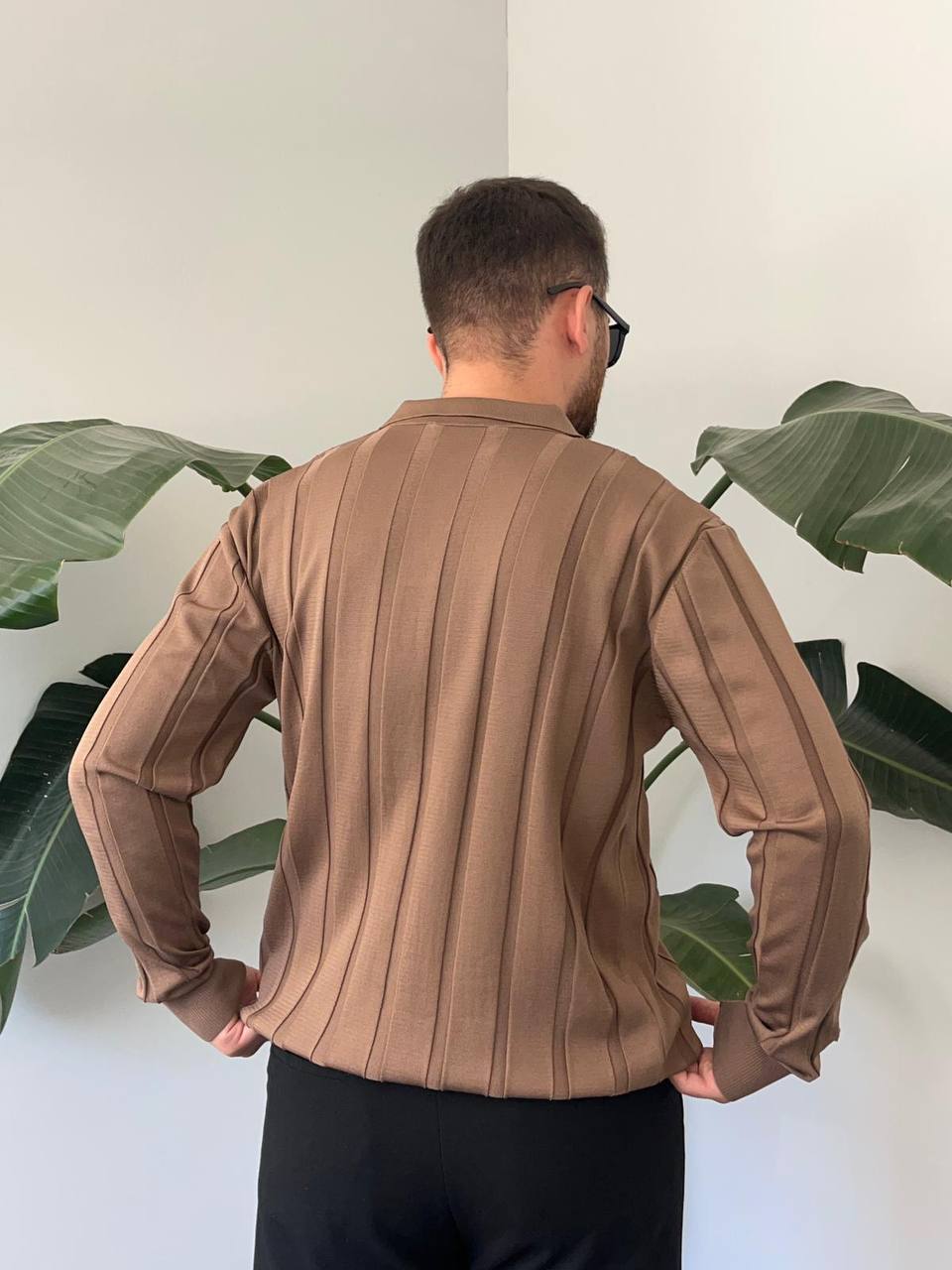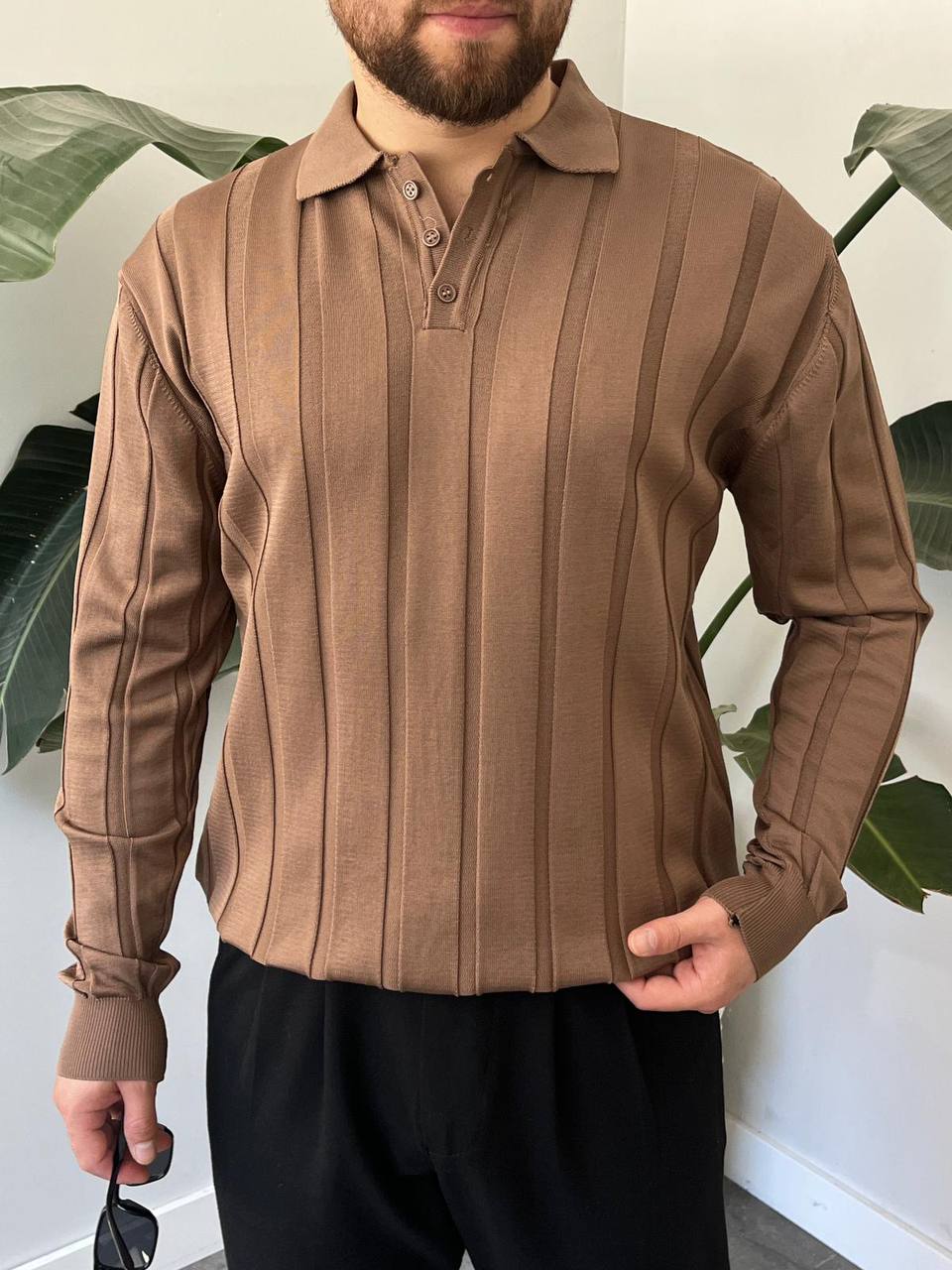 BayAygun 6560 Fitilli Düğmeli Yaka Kazak_Kahve