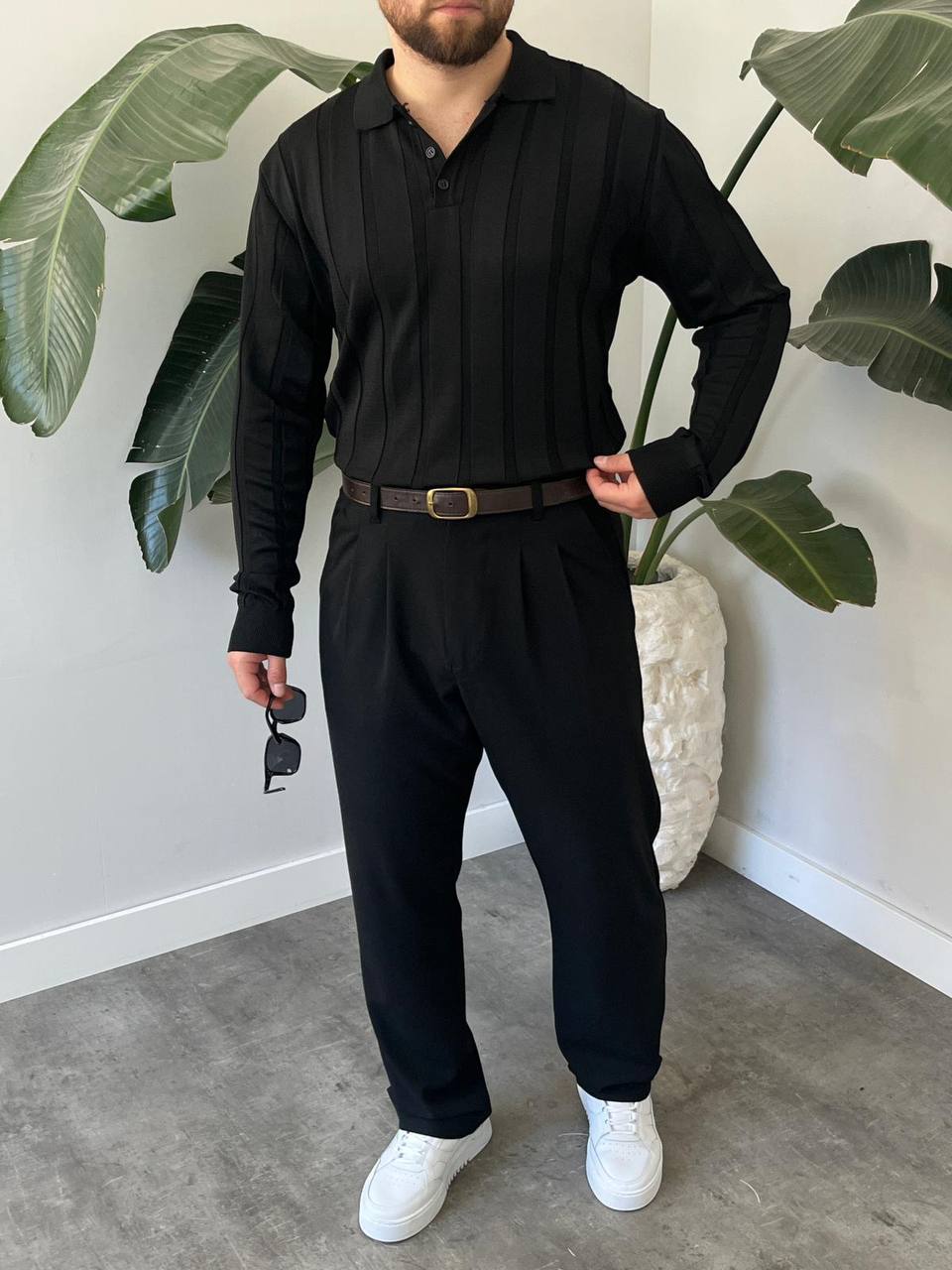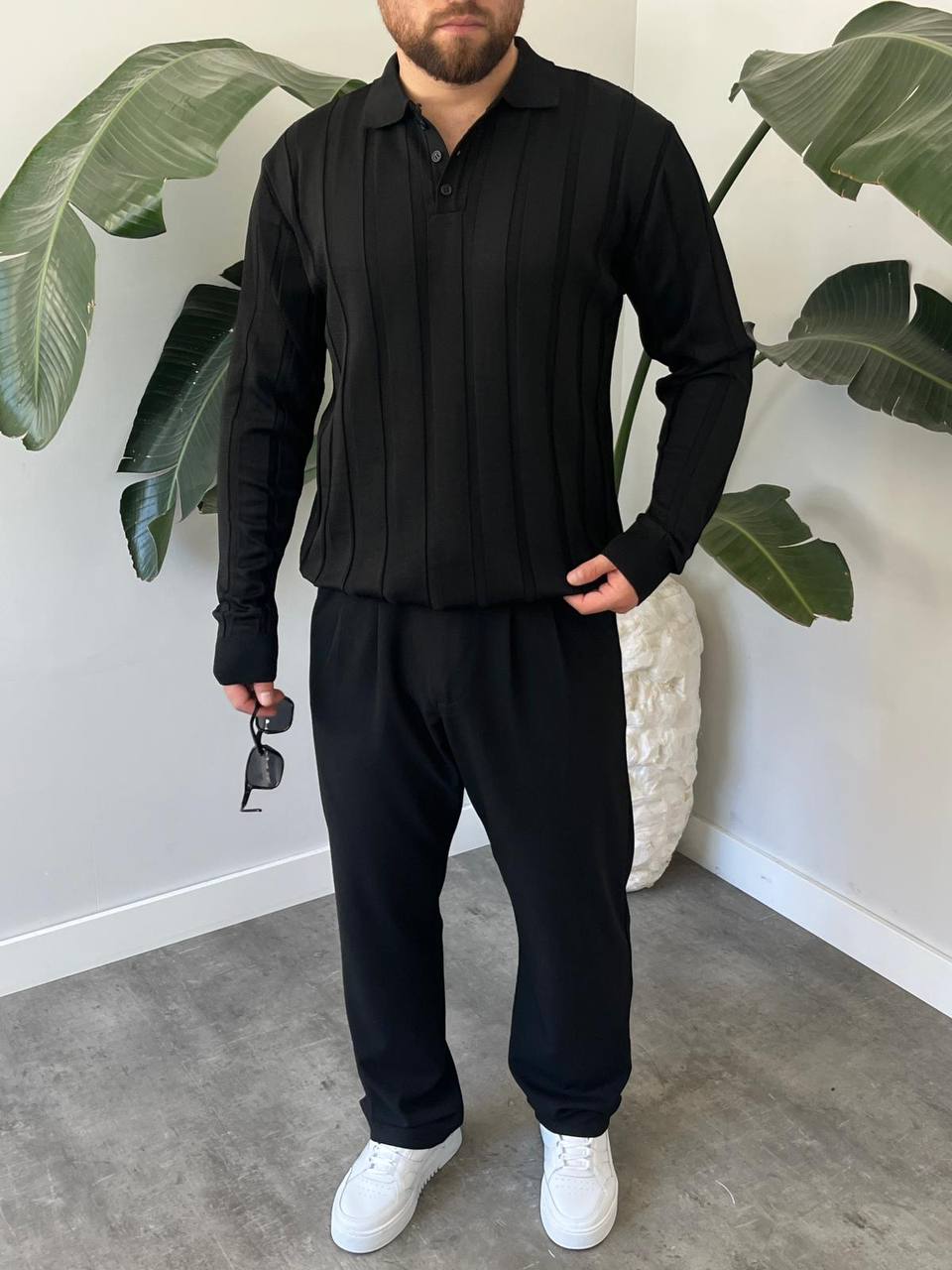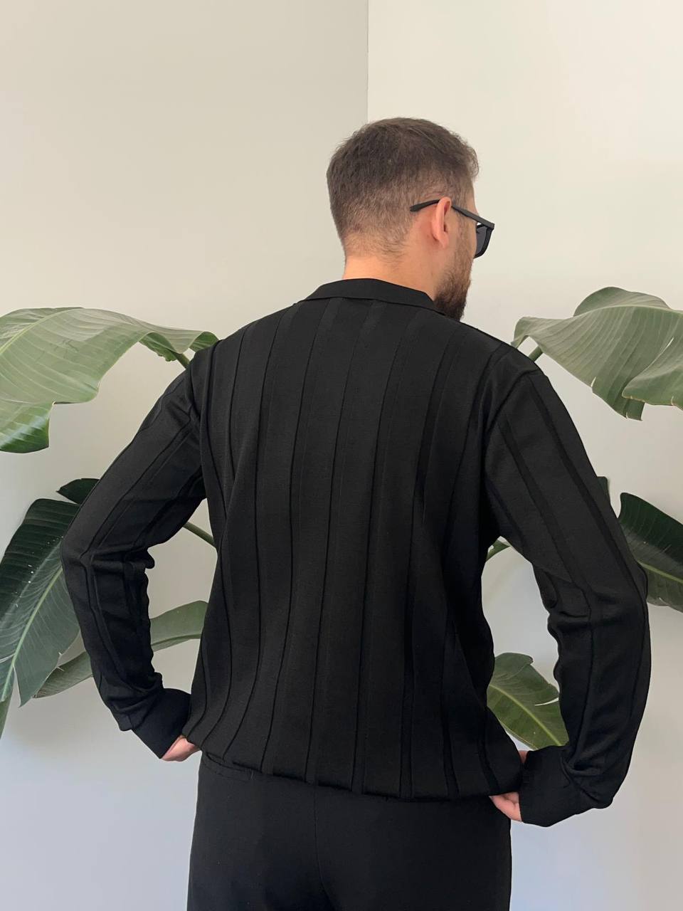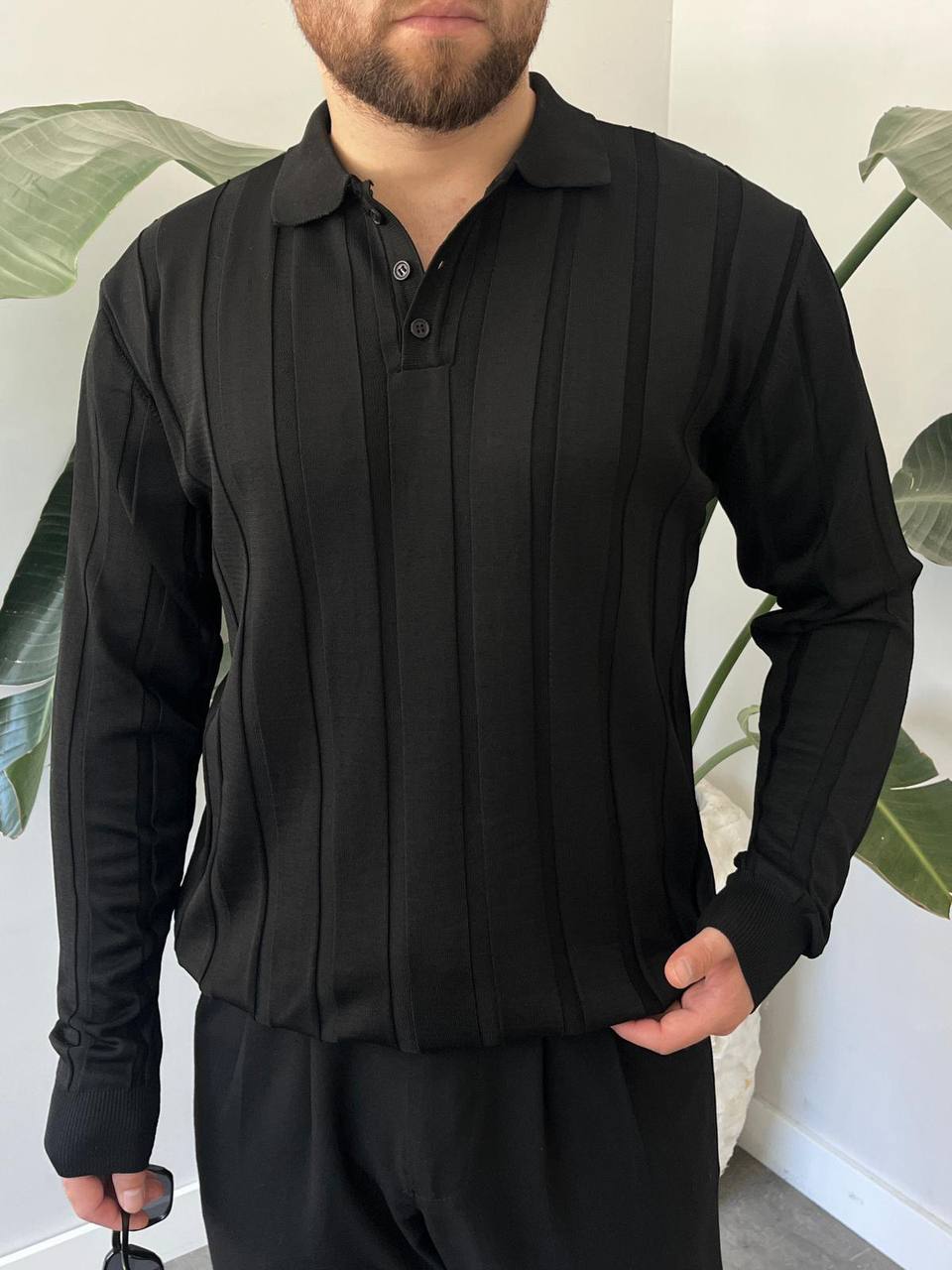 BayAygun 6560 Fitilli Düğmeli Yaka Kazak_Siyah