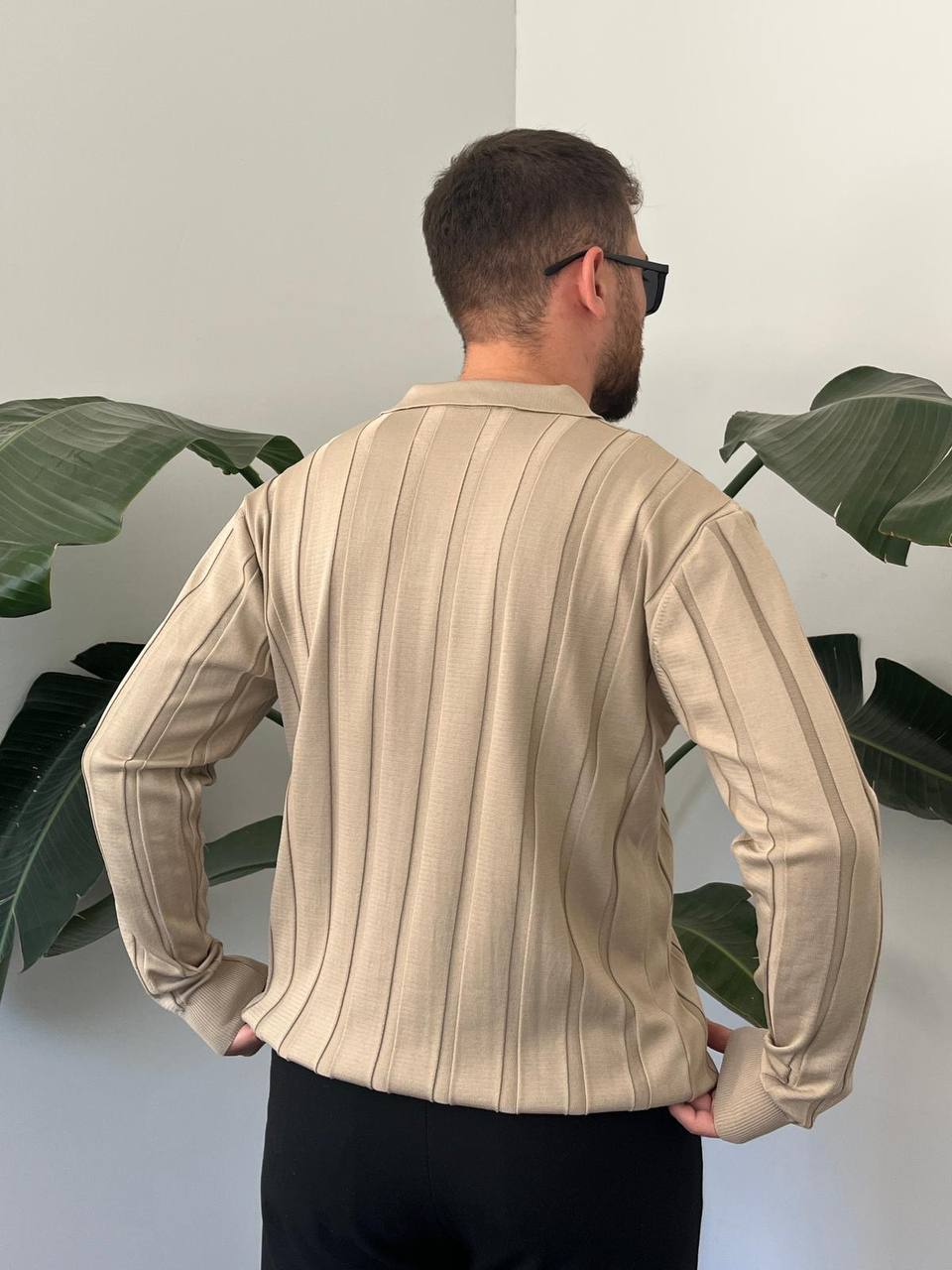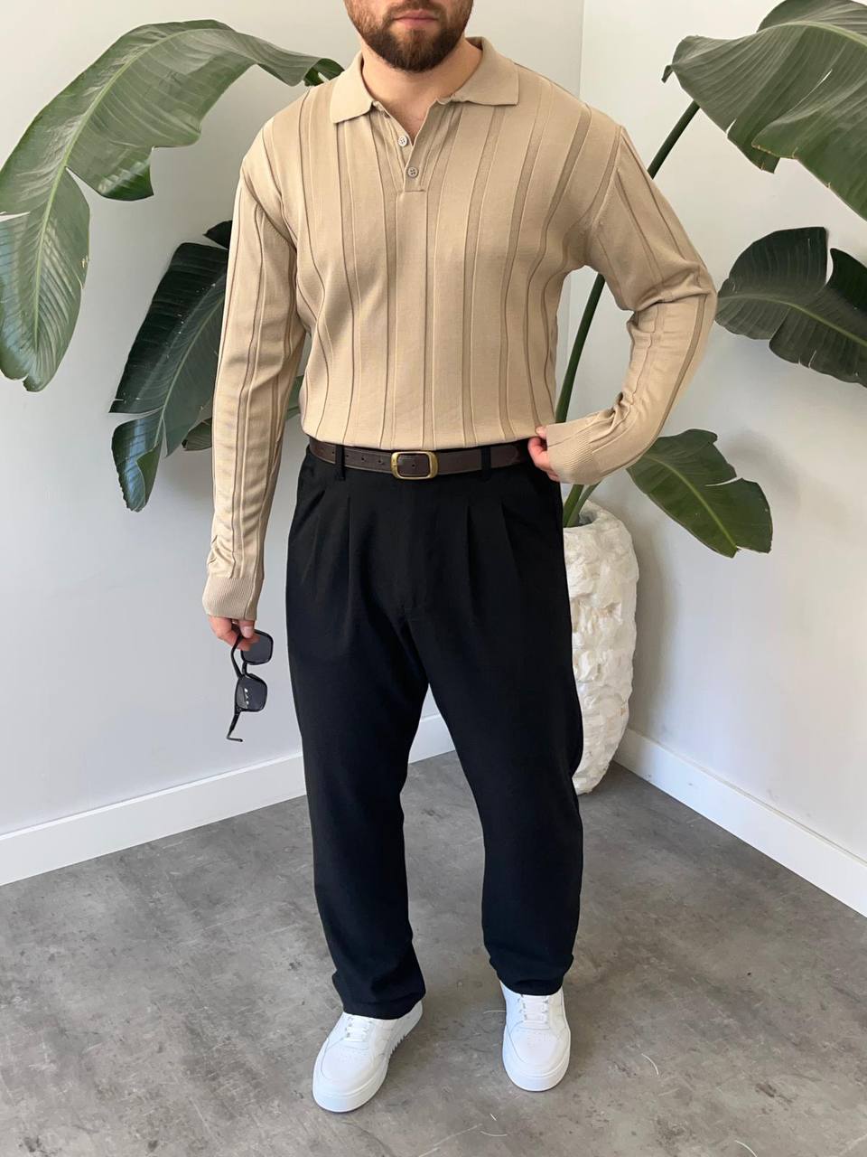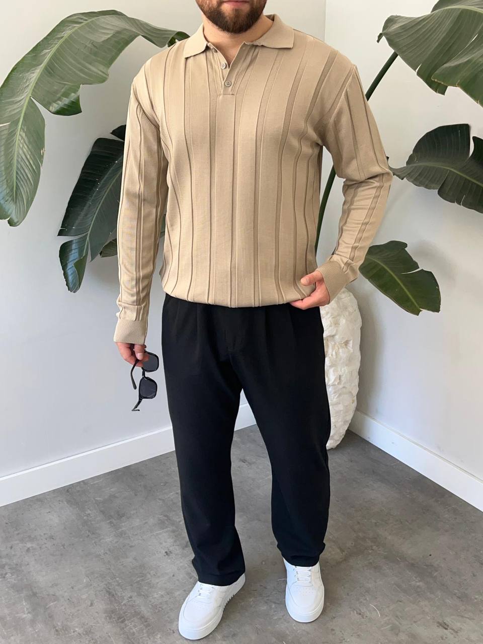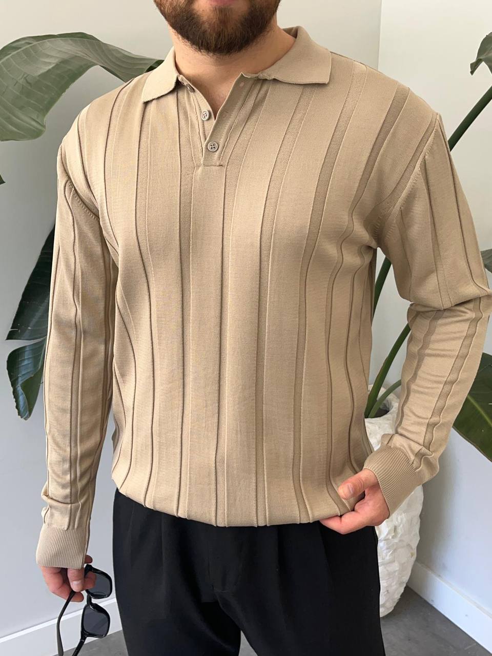- Günlük kullanım için ideal, rahat ve şık bir görünüm sunan Polo düğmeli yaka Kendinden Çizgili Triko Kazak.