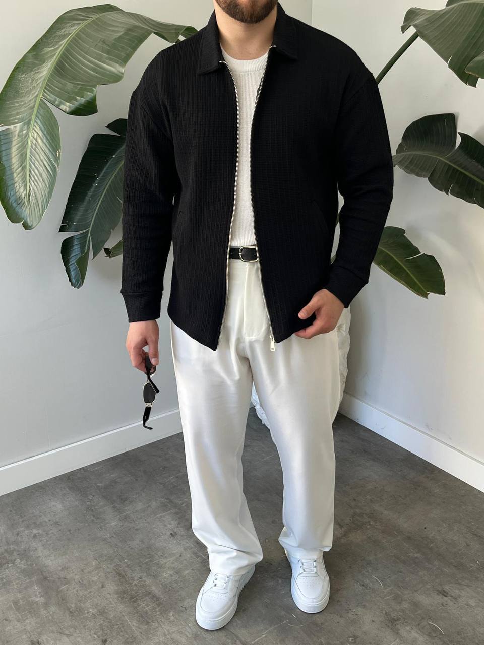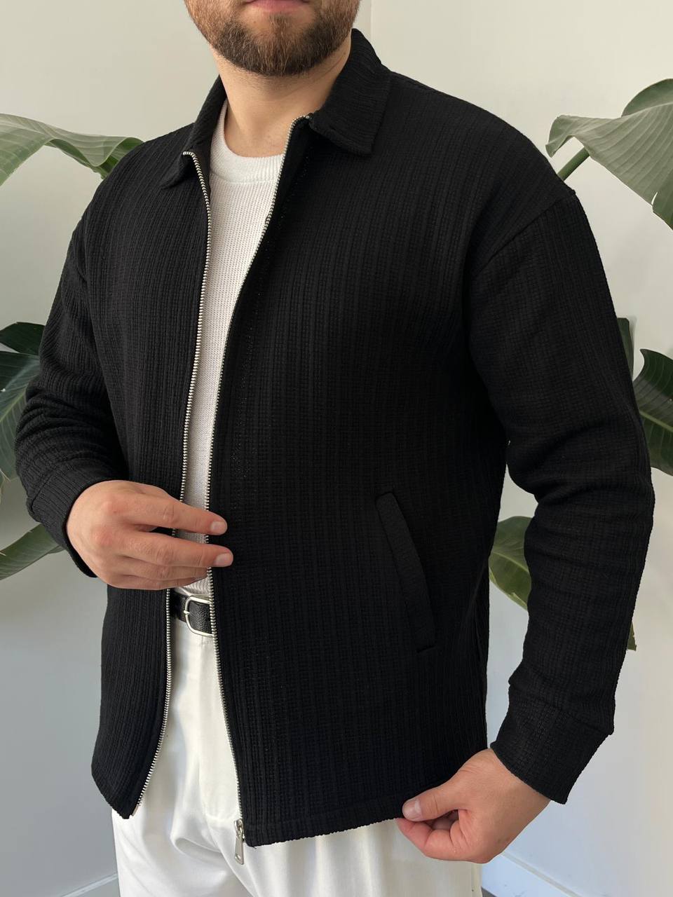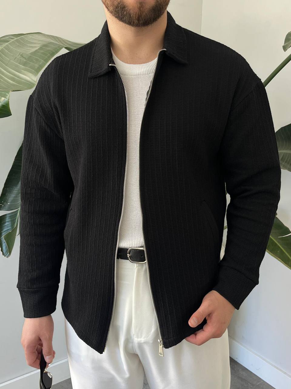 BayAygun 5104 Fermuarlı Yakalı Örme Mont _Siyah