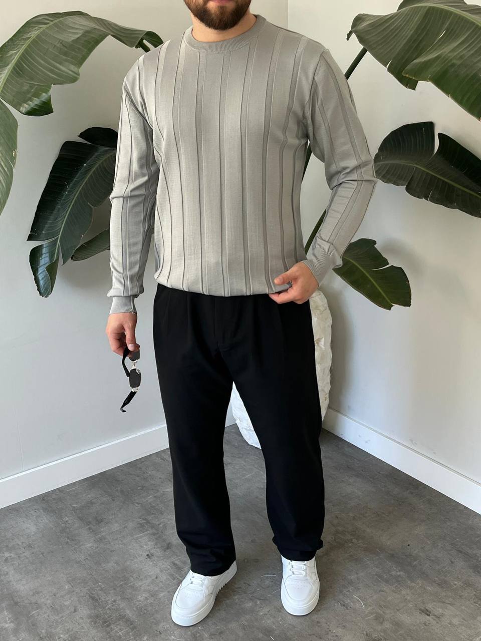 - Uzun kollu tasarımı ile kış aylarında sıcak tutarken, çizgili deseniyle modern bir stil yaratır.