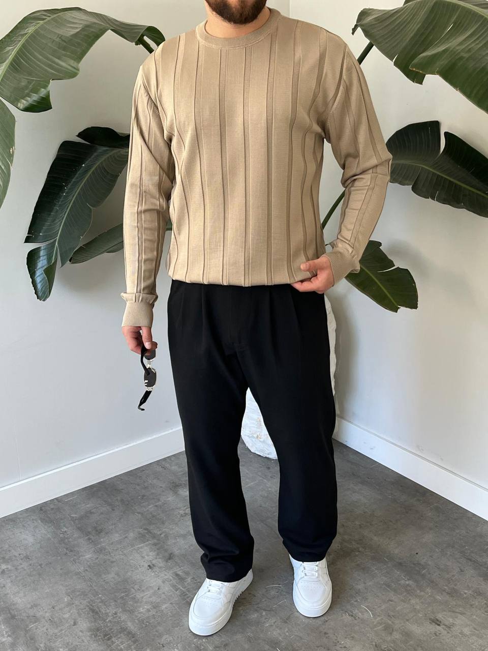 - Uzun kollu tasarımı ile kış aylarında sıcak tutarken, çizgili deseniyle modern bir stil yaratır.